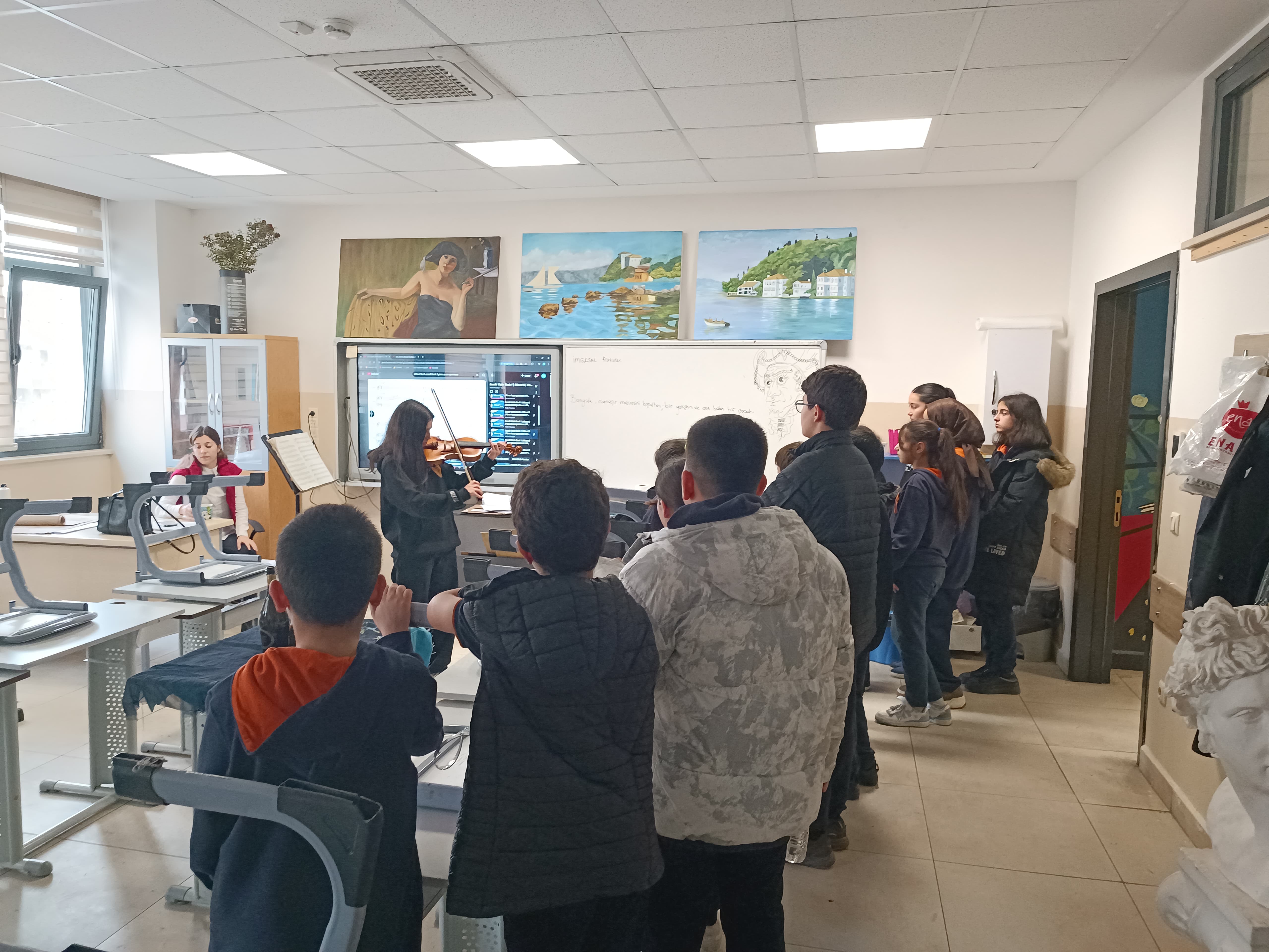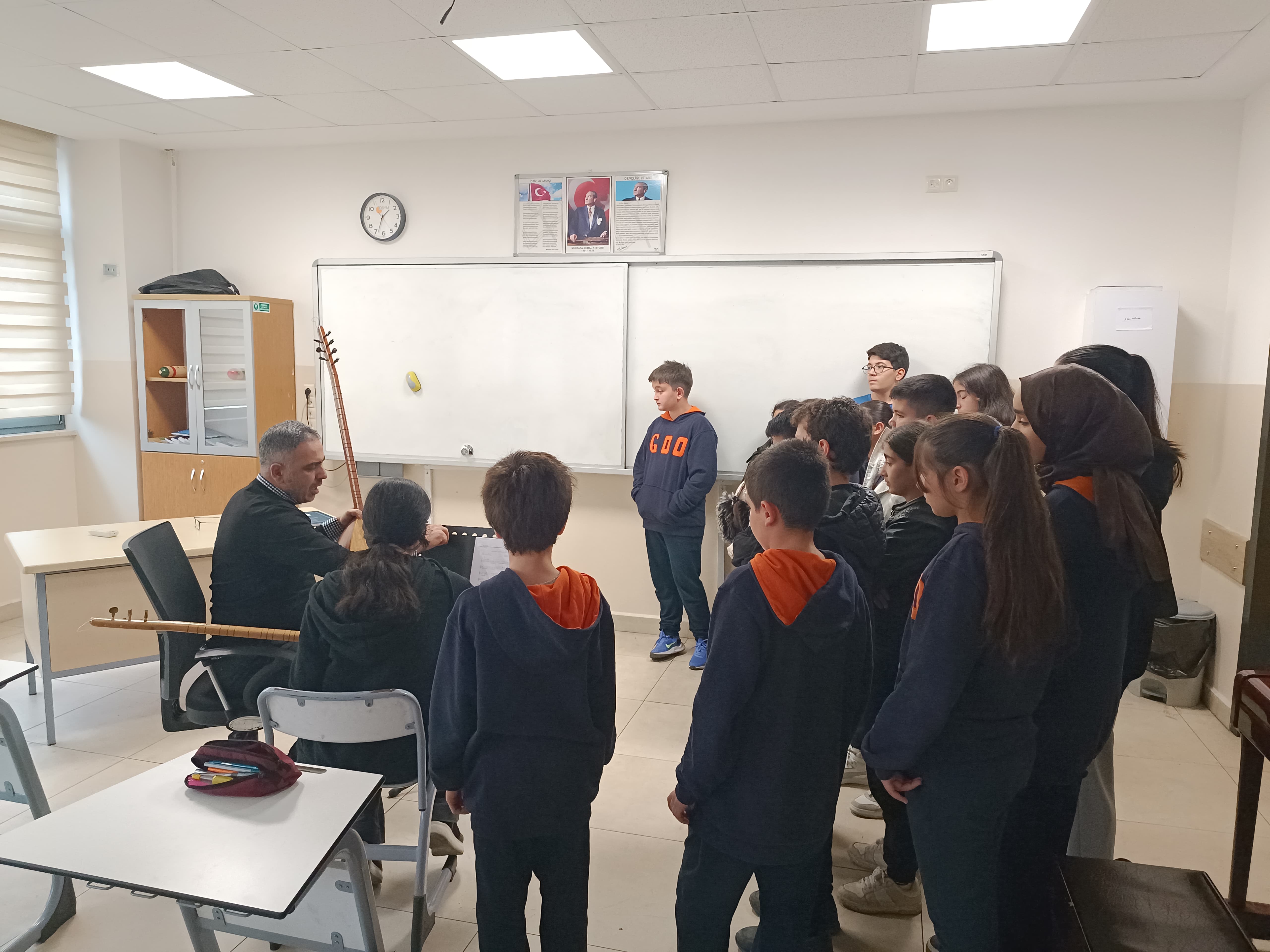 Genç AR-GE Projesi kapsamında gerçekleştirilen Hikmet Barutçugil Güzel Sanatlar Lisesi Müzik Atölyesi ziyareti, öğrencilerin sanat temelli öğrenme süreçlerini yerinde tanımaları ve müzik alanındaki uygulamaları gözlemlemeleri amacıyla planlanmıştır. Ziyaret sürecinde öğrenciler; müzik eğitiminin temel unsurları, enstrüman kullanımı, ritim ve ses çalışmaları ile toplu performans hazırlık süreçleri hakkında bilgilendirilmiştir.Atölye ortamında gerçekleştirilen uygulamalar sayesinde öğrencilerin estetik duyarlılık, yaratıcı düşünme ve disiplinli çalışma becerilerinin geliştirilmesi hedeflenmiştir. Ayrıca müziğin bireysel gelişim, duygusal ifade ve sosyal etkileşim üzerindeki etkileri vurgulanarak sanatın eğitimdeki yeri ve önemi ele alınmıştır. Gerçek öğrenme ortamlarında yapılan bu ziyaret, öğrencilerin sanatsal alanlara yönelik farkındalık kazanmalarını sağlamış, ilgi ve yeteneklerini keşfetmelerine katkı sunmuştur. Sürece toplam 60 öğrenci dahil olmuştur. Faaliyet, Genç AR-GE vizyonu doğrultusunda kültürel gelişimi destekleyen, çok yönlü ve yaratıcı bireyler yetiştirilmesine katkı sağlayan nitelikli bir eğitim etkinliği olarak değerlendirilmiştir.