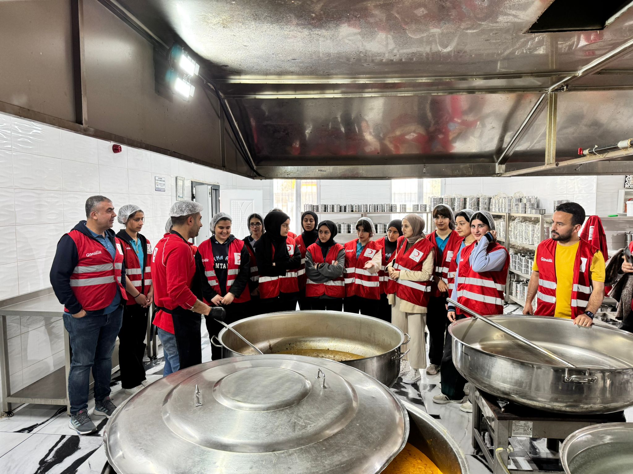 GençAr-Ge faaliyetleri kapsamında Türk Kızılay Muş Giyasettin BİNGÖL Aşevi ev sahipliğinde Yiyecek ve İçecek Hizmetleri Bölümü öğrencilerimizin katılımıyla"KIZILAY AŞEVİ HİZMETLERİ VE DAĞITIM AĞI (Sosyal Sorumluluk Bilinci)" programımızı gerçekleştirdik. Kızılay'ın günlük 500 hanelik yemek yapma aşamasını yerinde incelediler. 50 öğrencimiz hem yemek yaptılar hem de dağıtılan adreslere yemeğin ulaşmasında aktif rol aldılar. Öncelikle öğrencilerimiz bu işi severek ve eğlenerek yapıyorlar. Aşevi ortamında farklı insanlarla tanışıp, kaynaşıyorlar. Yemek dağıtımı sırasında Muş'un ihtiyaç sahibi ailerlerde bir araya geliyorlar. Bu onlarda içinde yaşadıkları toplum ile ilgili olarak farkındalık yaratıyor. Gözlemleri neticesinde sahip oldukları imkanların değerinin farkına varıyorlar. Bir taraftan kendilerine bu imkanları sağlayan ebeveynlerine karşı daha saygılı olmaları gerektiği düşüncesi oluşuyor. Diğer taraftan sahip olduklarının kıymetini bilmeleri gerektiğini fark ediyorlar. Yaşlı, engelli ve yardıma muhtaç insanlarla bir arada olup,yardımlaşma ve paylaşma bilinci yerleşiyor. Kızılay'ın bağışlarla yürüdüğünü öğrenince, bizde imkanımız olunca buraya bağışta bulunalım düşüncesi gelişiyor.