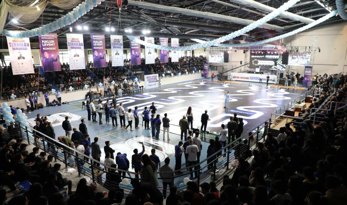 Ağrı Valiliği himayesinde, İl Milli Eğitim Müdürlüğü ile Hayrettin Atmaca Sağlık, Eğitim ve Teknoloji Geliştirme Vakfı iş birliğinde bu yıl üçüncüsü düzenlenen "Ağrı'nın Zirvesinde Teknoloji Yarışması"nın büyük finali gerçekleştirildi. İbrahim Çeçen Üniversitesi kapalı spor salonunda düzenlenen final programı, İl Milli Eğitim Müdürlüğü'nün ev sahipliğinde yapıldı. 14 ilden gelen 20 finalist takım, robotik projelerini sergiledi. Yarışmaya toplamda 220 okuldan 440 öğrenci başvuru yaptı. Ön değerlendirme sonrası her biri bir danışman öğretmen ve iki öğrenciden oluşan 20 takım finale kalmaya hak kazandı. Final programına Vali Mustafa Koç ve eşi Neslihan Gül Koç, MEB Mesleki ve Teknik Eğitim Genel Müdür Vekili Mehmet Bal, MEB Teftiş Kurulu Başkan Yardımcısı Burhan Kaya, MEB Temel Eğitim Genel Müdür Yardımcısı Şemsettin Durmuş, Hayrettin Atmaca Sağlık, Eğitim ve Teknoloji Geliştirme Vakfı Yönetim Kurulu Başkanı ve iş insanı Adem Atmaca, il protokolü, öğretmenler, öğrenciler, veliler ve çok sayıda davetli katıldı. Programda konuşan Vali Mustafa Koç, yarışmanın üç yılda bölgesel bir teknoloji hareketine dönüştüğünü belirterek, "Gençlerimiz sadece robot tasarlamakla kalmadı; problem çözme, takım çalışması ve azim gibi hayati beceriler kazandı. Bu başarı, hepimizin ortak emeğidir." dedi. MEB Mesleki ve Teknik Eğitim Genel Müdür Vekili Mehmet Bal da yarışmanın mesleki eğitime katkı sunduğunu vurgulayarak, "Bu yarışma gençlerimizi yenilikçi düşünmeye teşvik ediyor. Robot teknolojileriyle ilgilenen öğrencilerimizin gelişimini destekliyor." ifadelerini kullandı. İl Milli Eğitim Müdürü Hasan Kökrek de yarışmanın gençlerin hayal gücünü ve üretim yeteneğini geliştirdiğini ifade etti. Yarışma sonunda Merkez Hüseyin Celal Yardımcı Fen Lisesi birinci, Hamur Başsavcı İhsan Eroğul Kız Mesleki ve Teknik Anadolu Lisesi ikinci oldu. Elazığ Mesleki ve Teknik Anadolu Lisesi ile Iğdır Azer-İshak Yaycılı Bilim ve Sanat Merkezi ise üçüncülüğü paylaştı. Birinci olan takıma 100 bin TL, ikinciye 75 bin TL, üçüncülere ise 50 bin TL ödül verildi. Program kapsamında yapılan çekilişle katılımcılara televizyon, küçük ev aletleri ve çeşitli hediyeler dağıtıldı. Finalin ardından sanatçı Haluk Levent sahne aldı. Sevilen şarkılarını seslendiren sanatçı, salondaki katılımcılara coşkulu anlar yaşattı.
