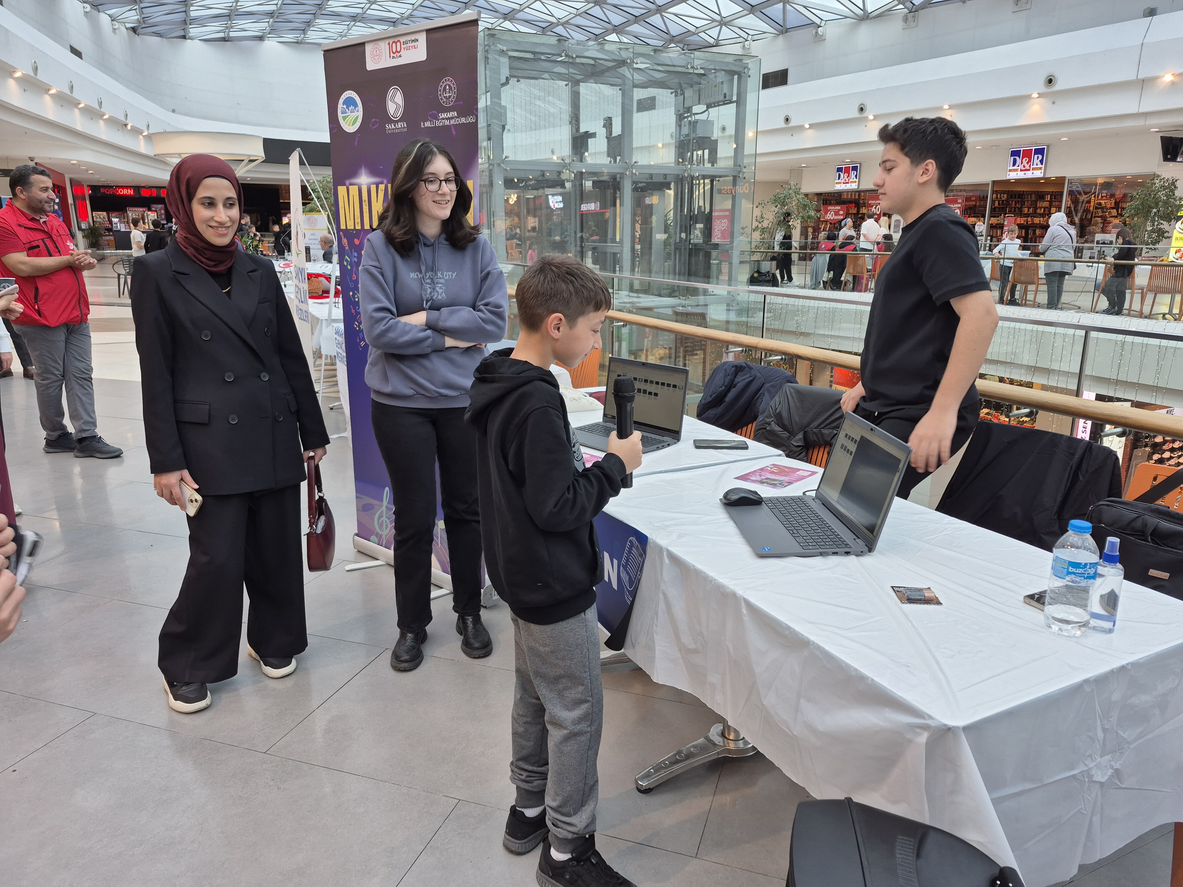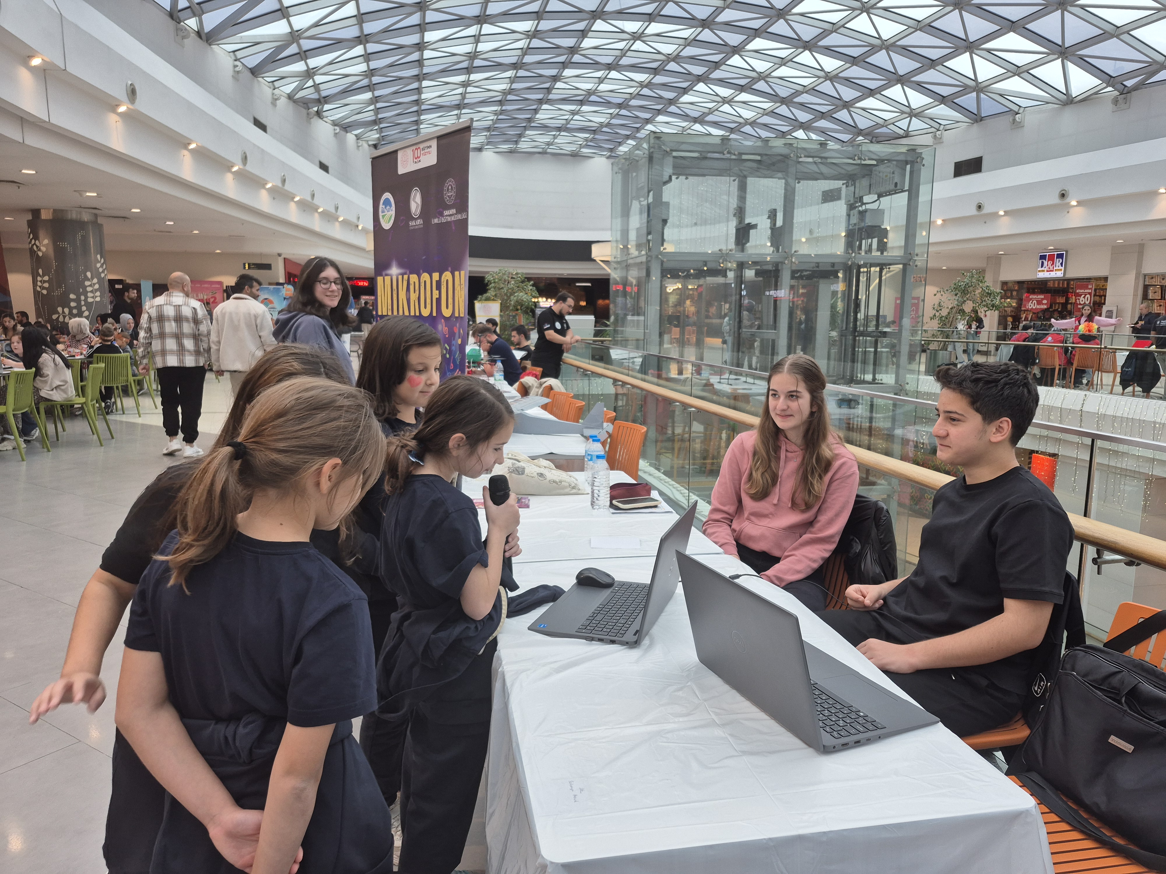 Genç Ar-Ge Ekibi, Mikrofon Sende Projesiyle Katılımcılara Unutulmaz Bir Karaoke Deneyimi Yaşattı. İlimiz Genç Ar-Ge ekibinin başarılı çalışmaları, bu yıl 6. kez düzenlenen Agora Teknoloji Festivali'nde büyük ilgi gördü. Ekip, 25-26 Ekim tarihlerinde Agora AVM'de gerçekleşen etkinlikte, İl Millî Eğitim Müdürlüğü'müzün yenilikçi projelerinden biri olan "Mikrofon Sende"yi başarıyla tanıttı. Festival katılımcıları, Genç AR-GE ekibinin standında sadece projeyi dinlemekle kalmadı, aynı zamanda bizzat deneyimleme fırsatı buldu. Projenin tanıtımının bir parçası olarak düzenlenen karaoke etkinliği, iki gün boyunca standın en eğlenceli ve dikkat çekici noktalarından biri oldu. Genç AR-GE ekibinin rehberliğinde mikrofonu alan katılımcılar, şarkı söyleyerek hem müzikal yeteneklerini sergiledi hem de festival coşkusuna ortak oldu. Özellikle gençlerin sosyal becerilerini ve öz güvenlerini geliştirmeyi hedefleyen "Mikrofon Sende" projesi, bu tür interaktif etkinliklerle alanda fark yaratmaya ve katılımcılarla güçlü bir bağ kurmaya devam ediyor.