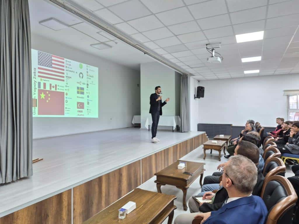 Bilecik İl Millî Eğitim Müdürlüğü Genç ARGE faaliyetleri kapsamında, Yapay Zekâ Eğitmeni Harun SEYHAN tarafından okulumuzda gerçekleştirilen “Yapay Zekâ ve Eğitimde Kullanım Alanları” konulu seminer, öğrencilerin ve eğitim paydaşlarının yapay zekâ teknolojilerine yönelik farkındalıklarını artırmak, dijital okuryazarlık becerilerini geliştirmek ve yapay zekânın eğitim süreçlerinde bilinçli, etik ve etkili kullanımına ilişkin bilgi kazandırmak amacıyla düzenlenmiştir. Faaliyet, dijital çağın gerektirdiği yetkinliklerin kazandırılması ve eğitimde yenilikçi yaklaşımların tanıtılması hedefiyle planlanmıştır. Seminerin hedef kitlesini; farklı okullardan katılım sağlayan öğrenciler, okul yöneticileri ve öğretmenler oluşturmuştur. Etkinlik, eğitim paydaşlarının yapay zekâ temelli uygulamalara ilişkin bilgi düzeylerini artırarak, eğitim süreçlerinde teknoloji entegrasyonunu desteklemeyi amaçlamıştır. Faaliyet kapsamında; yapay zekâ kavramının temel çerçevesi, eğitimde yapay zekânın kullanım alanları, öğretme–öğrenme süreçlerine katkıları, dijital okuryazarlığın önemi ve geleceğin eğitim yaklaşımları ele alınmıştır. Sunum sürecinde örnek uygulamalara yer verilmiş, katılımcıların konuya aktif katılımı teşvik edilmiştir. Böylece öğrencilerin yapay zekâya yönelik merak ve ilgilerinin artırılması, öğretmen ve yöneticilerin ise yapay zekâ destekli eğitim uygulamalarına ilişkin farkındalık kazanmaları sağlanmıştır. Faaliyetin somut çıktıları arasında; öğrencilerin dijital okuryazarlık ve yapay zekâ farkındalıklarının gelişmesi, eğitim ortamlarında yapay zekâ kullanımına yönelik olumlu tutumların oluşması, yenilikçi öğretim yöntemlerine yönelik bilinç düzeyinin artması ve kurumlar arası iş birliği kültürünün güçlenmesi yer almaktadır. Ayrıca etkinlik, iyi uygulama örneklerinin paylaşılmasına ve benzer çalışmalar için zemin oluşturulmasına katkı sunmuştur.