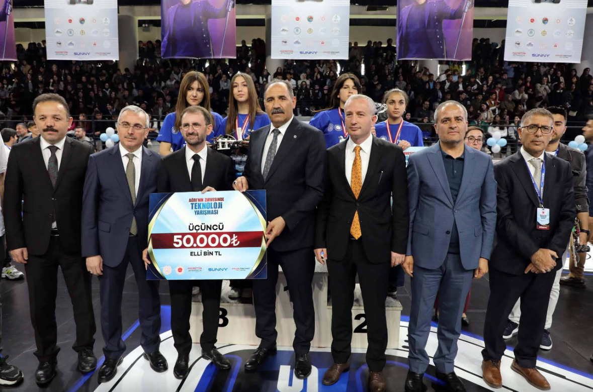Ağrı İbrahim Çeçen Üniversitesi kapalı spor salonunda düzenlenen final programı, İl Milli Eğitim Müdürlüğü'nün ev sahipliğinde yapıldı. 14 ilden gelen 20 finalist takım, robotik projelerini sergiledi. Yarışmaya toplamda 220 okuldan 440 öğrenci başvuru yaptı. Ön değerlendirme sonrası her biri bir danışman öğretmen ve iki öğrenciden oluşan 20 takım finale kalmaya hak kazandı. Final programına Vali Mustafa Koç ve eşi Neslihan Gül Koç, MEB Mesleki ve Teknik Eğitim Genel Müdür Vekili Mehmet Bal, MEB Teftiş Kurulu Başkan Yardımcısı Burhan Kaya, MEB Temel Eğitim Genel Müdür Yardımcısı Şemsettin Durmuş, Hayrettin Atmaca Sağlık, Eğitim ve Teknoloji Geliştirme Vakfı Yönetim Kurulu Başkanı ve iş insanı Adem Atmaca, il protokolü, öğretmenler, öğrenciler, veliler ve çok sayıda davetli katıldı. Programda konuşan Vali Mustafa Koç, yarışmanın üç yılda bölgesel bir teknoloji hareketine dönüştüğünü belirterek, "Gençlerimiz sadece robot tasarlamakla kalmadı; problem çözme, takım çalışması ve azim gibi hayati beceriler kazandı. Bu başarı, hepimizin ortak emeğidir." dedi. MEB Mesleki ve Teknik Eğitim Genel Müdür Vekili Mehmet Bal da yarışmanın mesleki eğitime katkı sunduğunu vurgulayarak, "Bu yarışma gençlerimizi yenilikçi düşünmeye teşvik ediyor. Robot teknolojileriyle ilgilenen öğrencilerimizin gelişimini destekliyor." ifadelerini kullandı. İl Milli Eğitim Müdürü Hasan Kökrek de yarışmanın gençlerin hayal gücünü ve üretim yeteneğini geliştirdiğini ifade etti. Yarışma sonunda Merkez Hüseyin Celal Yardımcı Fen Lisesi birinci, Hamur Başsavcı İhsan Eroğul Kız Mesleki ve Teknik Anadolu Lisesi ikinci oldu. Elazığ Mesleki ve Teknik Anadolu Lisesi ile Iğdır Azer-İshak Yaycılı Bilim ve Sanat Merkezi ise üçüncülüğü paylaştı. Birinci olan takıma 100 bin TL, ikinciye 75 bin TL, üçüncülere ise 50 bin TL ödül verildi. Program kapsamında yapılan çekilişle katılımcılara televizyon, küçük ev aletleri ve çeşitli hediyeler dağıtıldı. Finalin ardından sanatçı Haluk Levent sahne aldı. Sevilen şarkılarını seslendiren sanatçı, salondaki katılımcılara coşkulu anlar yaşattı.