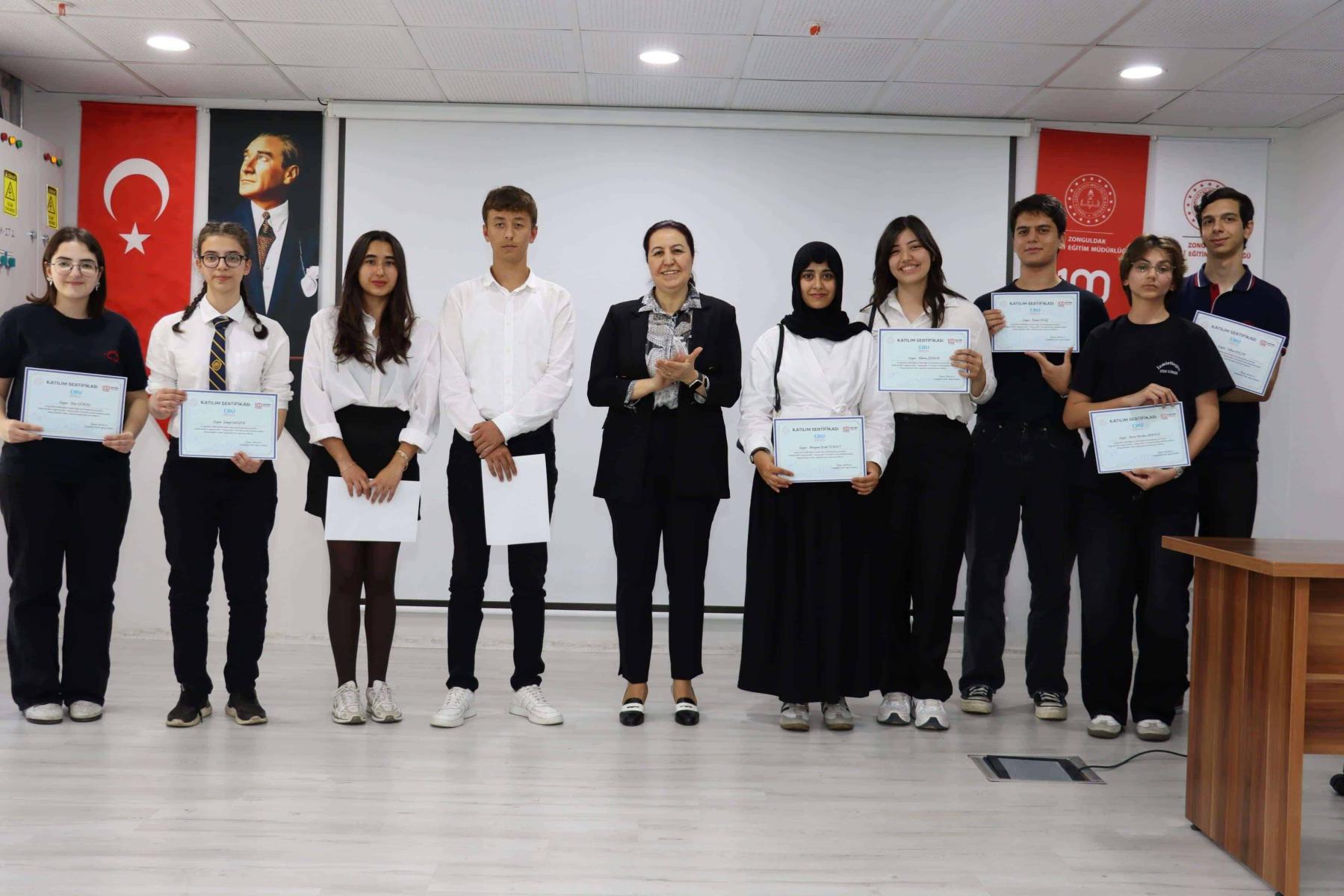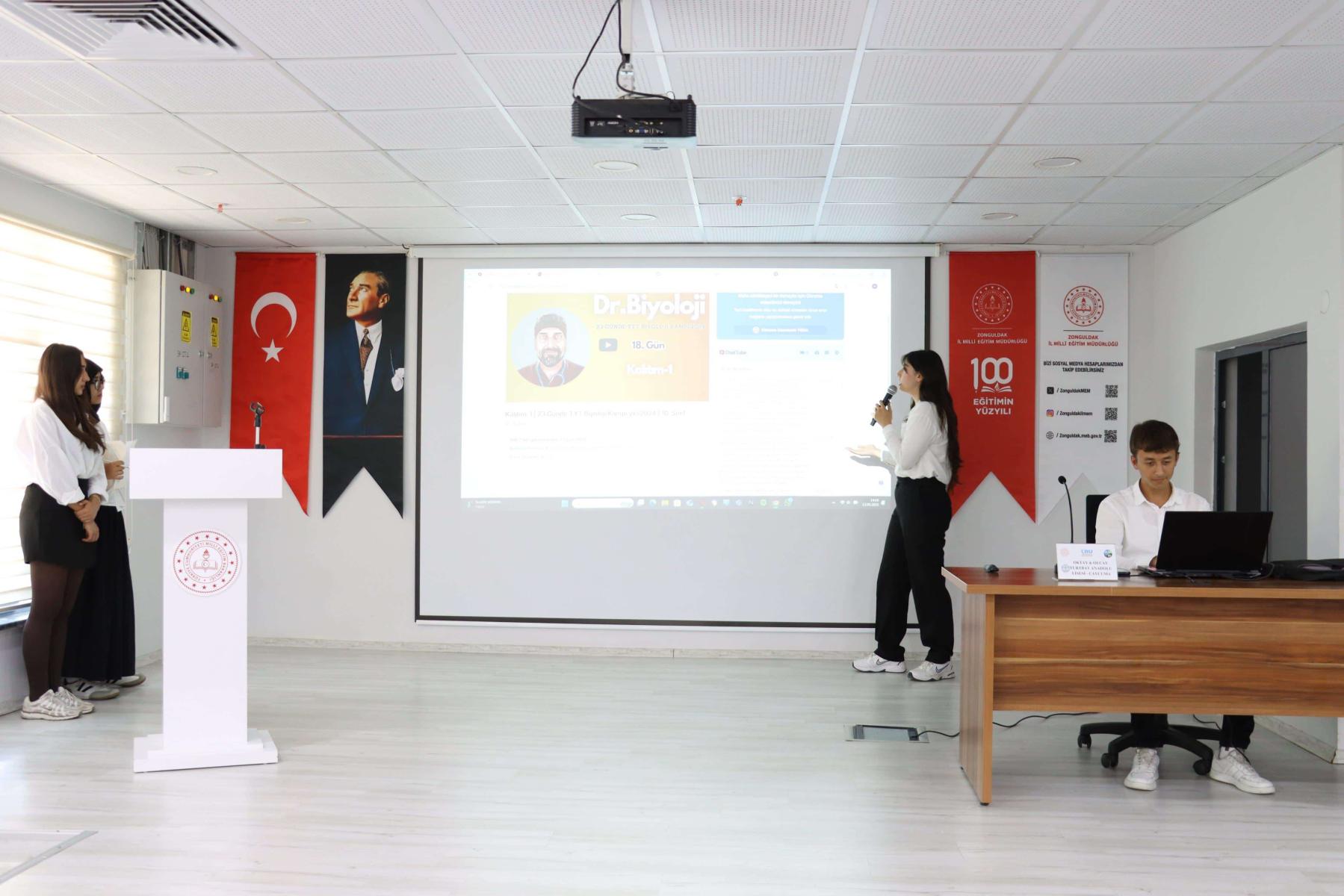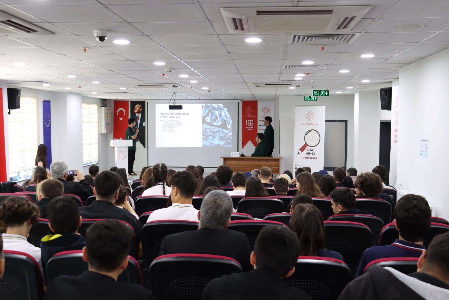 “Liselerde Bilim Uygulamaları Programı” kapsamında, Genç Ar-Ge faaliyetleri çerçevesinde “Yapay Zekâ İl Paneli” gerçekleştirilmiştir. Öğrencilerin bilimsel düşünme becerilerini geliştirmeyi amaçlayan bu etkinlik ile gençlere yapay zekânın temel prensipleri öğretilmiş; ayrıca yapay zekâ teknolojisinin eğitim, etik ve siber güvenlik gibi çeşitli alanlardaki kullanımına yönelik farkındalık kazandırılması hedeflenmiştir. Panelde öğrenciler, yapay zekânın etik boyutunu, eğitimdeki kullanımını, siber güvenlikteki rolünü ve robotik uygulamalardaki etkilerini içeren konularda sunumlar yapmış, katılımcılar bu önemli teknolojik alanlarda bilgi edinmişlerdir. Panelin amacı, öğrencilere yapay zekâ ve diğer teknolojik gelişmeler hakkında kapsamlı bilgiler sunarak, bilimsel düşünme becerilerini artırmak ve öğrencilerin yenilikçi teknolojilere dair bilinçli bir bakış açısı geliştirmelerini sağlamaktır. Ayrıca, bu etkinlik, öğrencilere teknolojinin eğitimdeki potansiyelini keşfetme ve bu teknolojileri sorumlu bir şekilde kullanma fırsatı sunmuştur. Etkinlik sonunda, paneli başarıyla tamamlayan öğrencilere katılım belgesi verilmiştir. Etkinlik, katılımcıların yapay zekâ ve robotik teknolojilerle ilgili bilgilerini artırmış ve onları geleceğin bilimsel ve teknolojik gelişmelerine daha hazırlıklı hale getirmiştir. 13 Mayıs 2025 tarihinde, Zonguldak İl Millî Eğitim Müdürlüğü Binası Konferans Salonunda gerçekleştirilen etkinliğe 75 öğrenci ve 11 öğretmen katılım sağlamıştır.