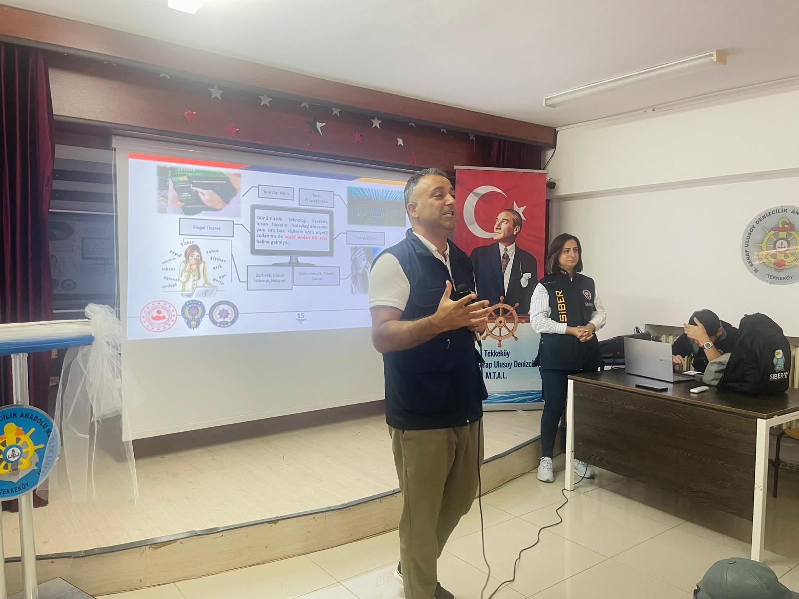 Tekkeköy Nedime Serap Ulusoy Denizcilik Meslekî ve Teknik Anadolu Lisesi, dijital çağda öğrencilerin ve öğretmenlerin karşılaşabileceği risklere dikkat çekmek amacıyla önemli bir farkındalık etkinliğine ev sahipliği yaptı. İnternet kullanımının her geçen gün artmasıyla birlikte ortaya çıkan suçlar, dolandırıcılık yöntemleri, istismar vakaları ve siber zorbalık gibi tehditlere karşı bilinç oluşturmak için düzenlenen eğitimde, SiberAy ekibinden Cem Mazmano ve Derya İren konuk olarak katıldı. “Bilinçli ve Güvenli İnternet Kullanımı” temalı eğitimde internetin görünmeyen karanlık yüzü, kullanıcıların karşılaşabileceği riskler ve bu risklerden korunma yöntemleri ele alındı. Sunumda, dijital ortamda başkalarına nasıl davranılması gerektiği, doğru bilgi paylaşımının önemi, dijital ayak izlerinin gelecekteki kimlik üzerindeki etkileri ve olumsuz bir durumla karşılaşıldığında izlenmesi gereken adımlar öğrencilere etkileşimli şekilde aktarıldı. Etkinlik süresince sivil toplum kuruluşları, hükümetler ve uluslararası kurumların çocukların ve gençlerin çevrim içi güvenliği konusundaki kaygıları da örneklerle anlatıldı. Eğitim, öğrencilerin interneti güvenli, bilinçli ve sorumluluk sahibi bir şekilde kullanmalarına katkı sağlayan kapsamlı bir farkındalık çalışması olarak değerlendirildi. Okul yönetimi, dijital güvenliğin önemine dikkat çeken bu tür etkinliklerin devam edeceğini belirterek SiberAy ekibine katkılarından dolayı teşekkür etti.