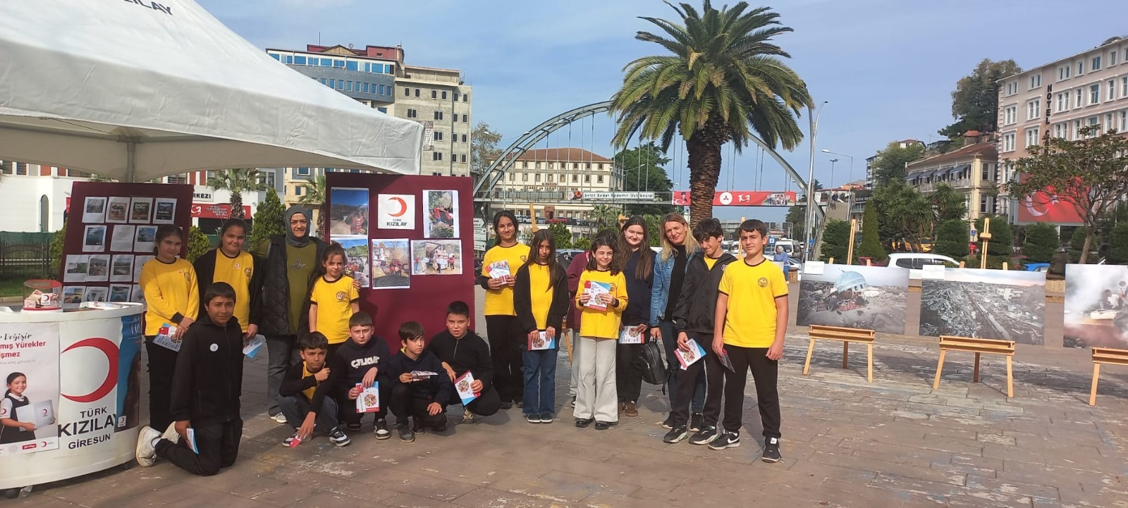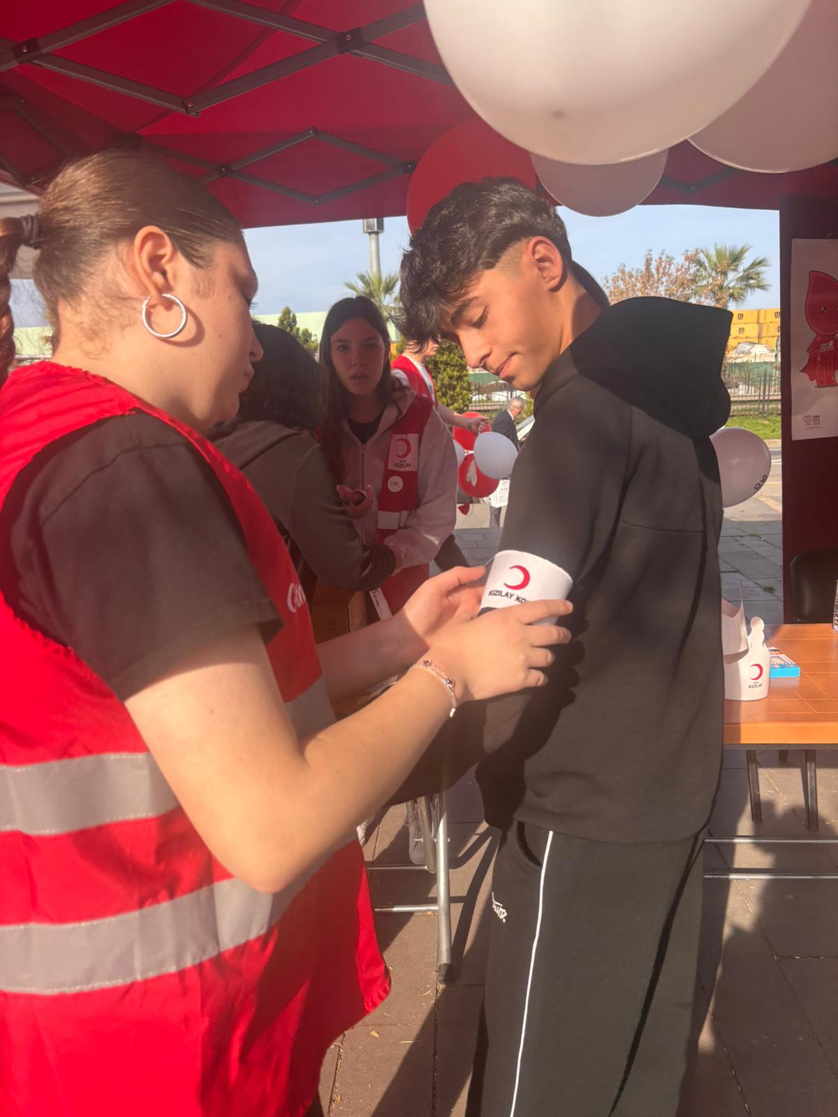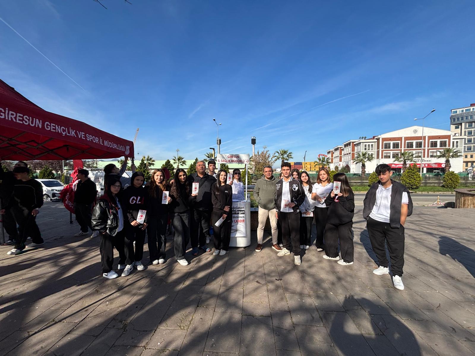 Giresun’da Kızılay Haftası, 3-5 Kasım tarihleri arasında Atatürk Meydanı’nda düzenlenen etkinliklerle kutlandı. Türk Kızılayı’nın yürüttüğü insani yardım çalışmalarının önemini vurgulamak ve gönüllülük bilincini artırmak amacıyla gerçekleştirilen etkinlikler, vatandaşlardan yoğun ilgi gördü. Bu kapsamda, Genç AR-GE Ekibi de etkinlik alanında yer alarak Kızılay’a destek verdi. Öğrenciler, Kızılay gönüllüleriyle birlikte stantlarda görev alarak vatandaşlara bilgilendirme broşürleri dağıttı, sağlık ve çevre temalı farkındalık çalışmalarına katkı sağladı. Ayrıca “Sıfır Atık” ve toplumsal dayanışma konularında hazırladıkları materyallerle çevre bilincinin önemine dikkat çektiler. Kızılay Haftası süresince düzenlenen etkinliklerde; fotoğraf sergileri, sağlık bilgilendirmeleri ve çocuklara yönelik etkinliklerle birlikte geniş bir katılım sağlandı. Yedisi dezavantajlı toplam kırk sekiz öğrencinin katıldığı etkinlikte Genç AR-GE Ekibi, gönüllülük kültürünün gençler arasında yaygınlaşması ve toplumsal duyarlılığın artırılması yönünde önemli bir rol üstlendi.