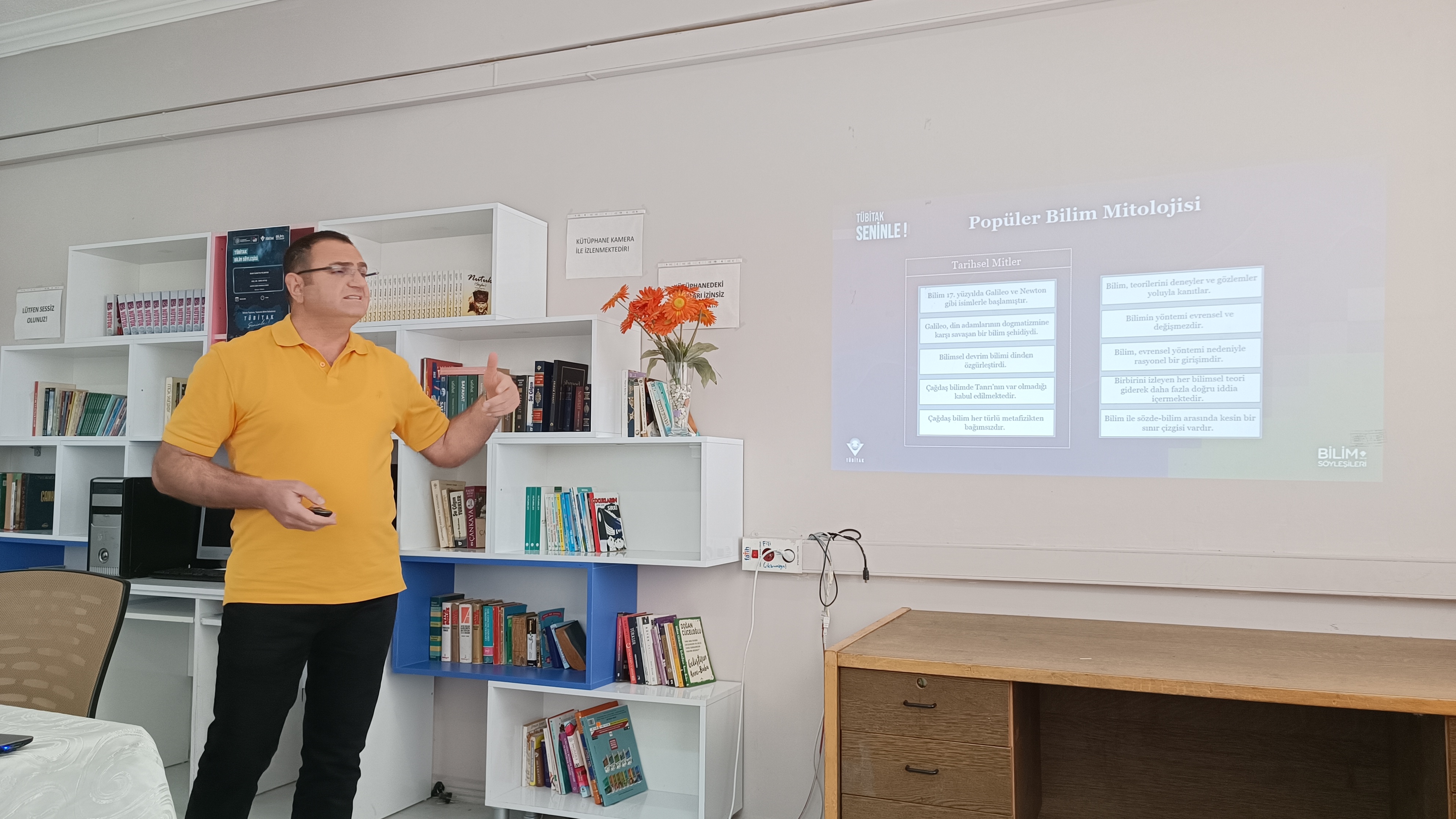 09.05.2025 Cuma günü okulumuz Huriye Süer Anadolu Lisesi kütüphanesinde Amasya Üniversitesi Eğitim Fakültesi akademik personeli Doç. Dr. İdris AKTAŞ' ın konuşmacı olarak katıldığı TÜBİTAK Bilim Söyleşisi düzenlendik. Söyleşiye 50 öğrencimiz ve 8 öğretmenimiz katılmıştır. Söyleşi de "Bilim Tarihi ve Felsefesi" konusu işlenmiştir. Söyleşi izi konuşmacı Doç. Dr. İdris AKTAŞ ve öğrencilerimizin karşılıklı iletişimi ile tamamladık. Söyleşide öğrencilerimiz bilimin tarihsel gelişimini ve felsefe ile olan etkileşimini sohbet havasında öğrendiler. Konuşmacı Doç. Dr. İdris AKTAŞ söyleşide bilimin antik çağlardaki ilerleyişinden başlayıp, ünlü felsefecilerin bilime olan katkıları ile günümüze kadar olan serüvenini işledi. Böylece öğrencilerimiz felsefenin bilim üzerindeki etkisini öğrenmiş oldular.