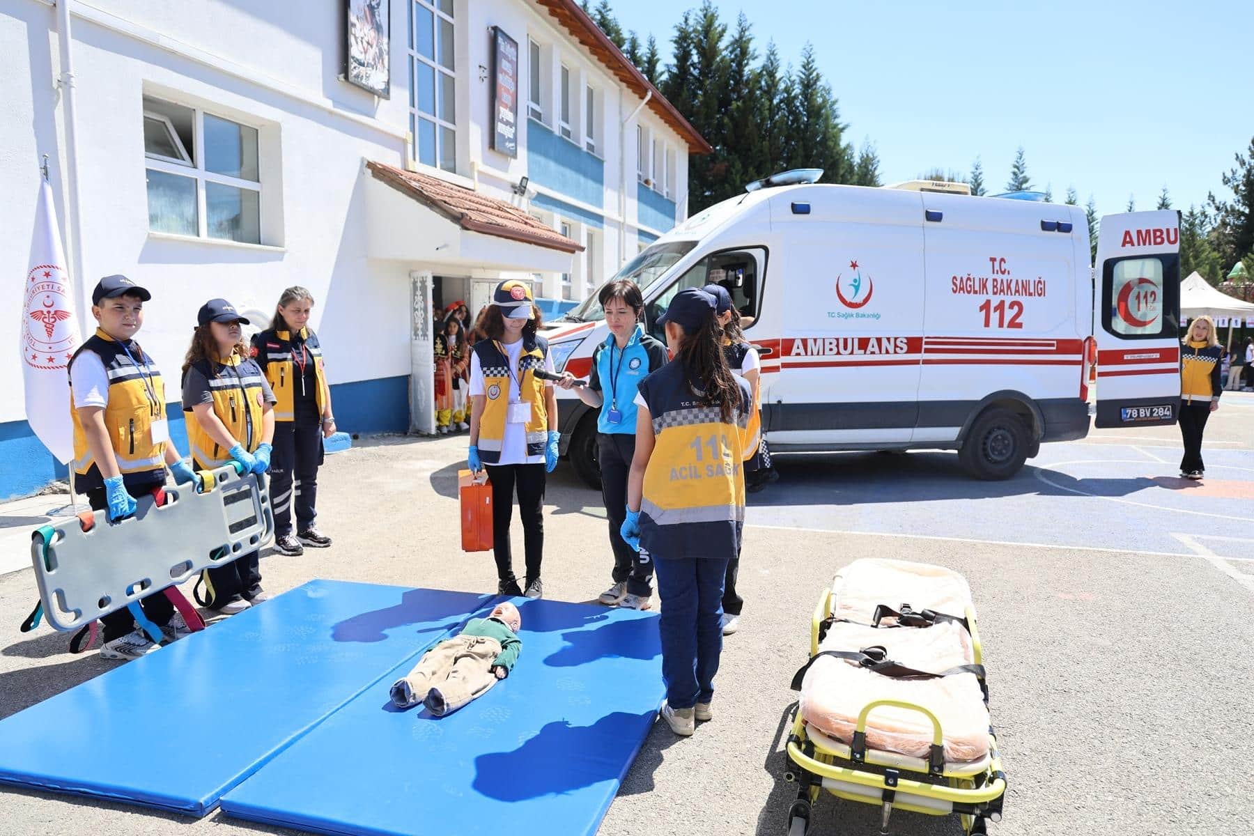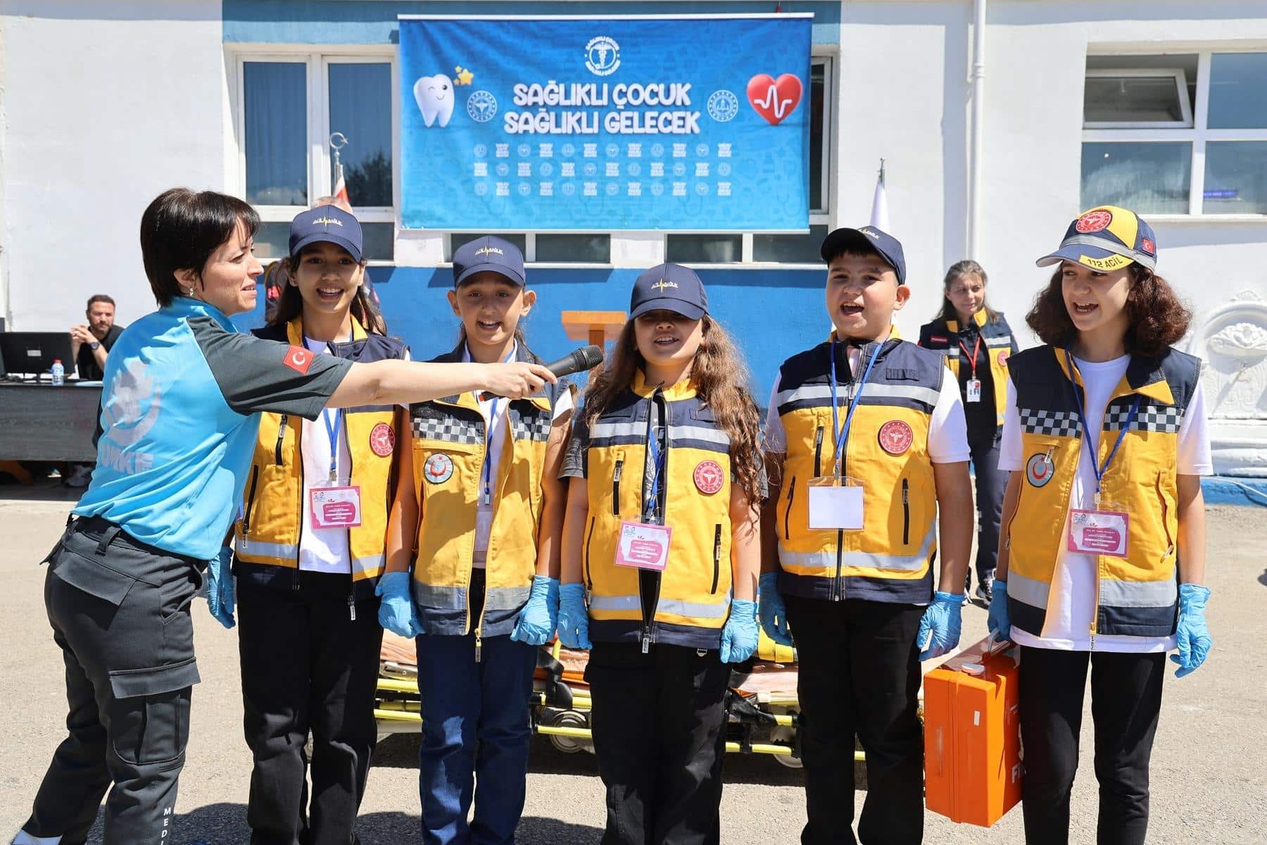 Karabük Genç AR-GE etkinlikleri kapsamında gerçekleştirilen Sağlığın korunması ve geliştirilmesi amacıyla; çocukların ve dolayısıyla toplumun sağlıklı yaşam alışkanlıkları kazanması ve sağlık okuryazarlığı düzeyinin artırılması amacıyla Sağlık Bakanlığımız ile Millî Eğitim Bakanlığımız arasında imzalanan "Sağlıklı Çocuk, Sağlıklı Gelecek" Okul Sağlığı Hizmetleri İş Birliği Protokolü kapsamında Şehit Mehmet Dinçel İlkokulu'nda tanıtım etkinliği düzenlendi. Etkinliğe İl Millî Eğitim Müdürümüz Nevzat Akbaş, İl Sağlık Müdürü İsmail Kara, Şube Müdürlerimiz İdris Kınasakal ve Oktay Köse, İl Sağlık Müdürlüğü çalışanları, öğretmenler ve öğrenciler katıldı. Saygı duruşu ve İstiklal Marşımızın okunmasıyla başlayan program okulun öğrencileri tarafından halk oyunları gösterileri ile devam etti. Protokol konuşmaları ile devam eden programda İl Millî Eğitim Müdürümüz Nevzat Akbaş, "Bugün burada, Sağlık Bakanlığımız ve Millî Eğitim Bakanlığımız arasında imzalanan bu önemli protokolün Karabük'teki yansımalarını hayata geçirmek üzere bir araya gelmiş bulunuyoruz. Bu iş birliği, çocuklarımızın bedensel, zihinsel ve sosyal gelişimlerini desteklemek, onlara sağlıklı yaşam alışkanlıkları kazandırmak ve sağlık okuryazarlığı düzeylerini artırmak adına atılmış çok değerli bir adımdır. Unutmayalım ki; sağlıklı çocuklar, güçlü bir toplumun temelidir. Bu projeyle, çocuklarımızın erken yaşta edinecekleri doğru alışkanlıklar, onların gelecekteki yaşam standartlarını da şekillendirecektir. Bu vesileyle, projenin hayata geçirilmesinde emeği geçen başta Sayın Valimiz olmak üzere, İl Sağlık Müdürlüğümüze, okul yöneticilerimize, öğretmenlerimize ve destek veren tüm paydaşlarımıza saygılarımı sunuyorum." dedi. Protokol heyeti tarafından sağlık elçilerine katılım belgelerinin verilmesi, 112 Acil Sağlık ekipleri ve sağlık elçileri ortaklığında basit tıbbi müdahale gösterisi ile stant ziyaretlerinin ardından program sona erdi. Etkinlik kapsamında 25 öğrencimize temel ilk yardım konusunda eğitim verildi.