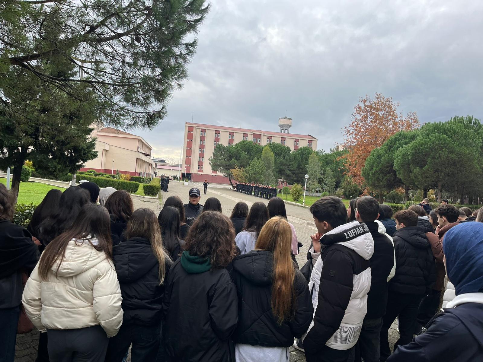 Okulumuz son sınıf öğrencilerinin ilgi ve talepleri doğrultusunda, 20 Kasım 2024 tarihinde okulumuza yakın konumda bulunan Samsun Polis Okulu’na bir ziyaret gerçekleştirildi. Ziyaret öncesinde gerekli yazışmalar yapılarak izin alınmış ve tarih belirlenmiştir. Öğrencilerimizi okul girişinde görevli polis memuru karşıladı. İlk olarak kapıda genel bilgilendirme yapıldı. Ardından öğrencilerimiz, Polis Okulu’nun çevresi, bölümleri ve faaliyet alanları hakkında bilgi edindiler. Daha sonra salona geçilerek Polis Okulları giriş sınavları hakkında detaylı bir sunum gerçekleştirildi. Kız ve erkek öğrenci alımları, okulların farklı illerde bulunması ve sınav süreciyle ilgili ayrıntılı bilgiler paylaşıldı. Öğrencilerimizin gelecek kaygıları ve ailelerinin ekonomik durumlarının sınırlı olması nedeniyle, kısa sürede mesleğe adım atabilecekleri alanlara yönelme eğilimleri daha yoğun olabilmektedir. Bu doğrultuda düzenlenen gezide öğrencilerimiz, kendilerini geliştirme ve meslek seçimleri konusunda bilinçlenme fırsatı buldular. Yaklaşık 55 öğrenci ve iki öğretmenin katılımıyla gerçekleşen ziyaretin ardından öğrencilerimiz, Polis Okulu giriş koşulları hakkında daha net ve kapsamlı bilgi sahibi oldular. Ayrıca yürüyerek gerçekleştirilen bu ziyaret, öğrencilerimizle birlikte güzel bir anı olarak hafızalarda yer aldı.
