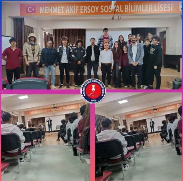 Yenişehir Mehmet Akif Ersoy Sosyal Bilimler Lisesi Felsefe Kulübünden Anlamlı Etkinlik: “Felsefe ve Pratik Yaşam” Konferansı. Okulumuz Felsefe Kulübü “Konferans Grubu” tarafından kasım ayı etkinlikleri kapsamında “Felsefe ve Pratik Yaşam” konulu kapsamlı bir konferans gerçekleştirildi. 11. sınıflardan yaklaşık 30 öğrencimizin yoğun ilgi gösterdiği programda, Çukurova Üniversitesi Felsefe Bölümü akademisyenlerinden Prof. Dr. Sadık Erol Er konuşmacı olarak misafir edildi. Prof. Dr. Er, felsefenin gündelik yaşama etkilerini, düşünme biçimlerini nasıl şekillendirdiğini ve bireyin yaşamına kazandırdığı bakış açılarını örneklerle anlatarak öğrencilerle keyifli ve verimli bir paylaşım gerçekleştirdi. Konferansın sonunda soru–cevap bölümü yapılarak, öğrencilerin merak ettikleri konular üzerine derinlemesine değerlendirmeler yapıldı. Felsefe perspektifinin hayatın farklı alanlarında nasıl yol gösterici olabileceği üzerinde durulurken, gençlerin düşünme becerilerini güçlendirecek önemli çıkarımlarda bulunuldu.