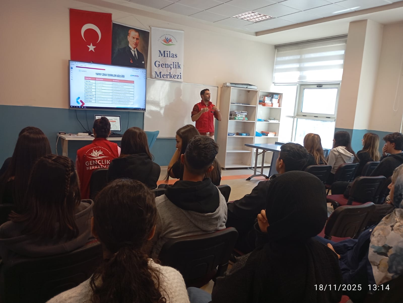 Genç AR-GE programı kapsamında düzenlenen “ Yapay Zekâ ile Gelecek Tasarımı Atölyesi ”, öğrencilerin yapay zekâ teknolojilerini tanımalarını, bu teknolojiyi etik ilkeler çerçevesinde değerlendirebilmelerini ve geleceğin dünyasında bilinçli kararlar verebilmelerini desteklemek amacıyla gerçekleştirilmiştir. Milas İlçe Millî Eğitim Müdürlüğü koordinasyonunda yürütülen çalışma, Milas Gençlik Merkezi ev sahipliğinde ve Gençlik Lideri Şahin DEMİR rehberliğinde uygulanmıştır. Atölyenin ilk bölümünde öğrencilere yapay zekânın tanımı, tarihsel gelişimi ve çalışma prensiplerine ilişkin temel bilgiler aktarılmış; tıbbi tarama sistemlerinden akıllı asistanlara, robotik uygulamalardan üretim otomasyonuna kadar güncel yapay zekâ örnekleri üzerinden teknolojinin yaşamın birçok alanını nasıl dönüştürdüğü gösterilmiştir. Bu içerik, öğrencilere yapay zekâya yönelik kapsamlı bir perspektif kazandırmıştır. Programın ikinci bölümünde “ Yapay Zekâ ve Etik ” teması ele alınmış; veri gizliliği, algoritmik ön yargı, dijital güvenlik ve yapay zekânın karar alma süreçlerinde şeffaflık gibi konular örnek olaylar eşliğinde tartışılmıştır. Bu aşamada öğrenciler, üç kişilik gruplara ayrılarak kendilerine verilen etik ikilemleri analiz etmiş ve görüşlerini sınıf ortamında paylaşmıştır. Süreç, eleştirel düşünme ve problem çözme becerilerinin gelişimine önemli katkı sağlamıştır. Uygulamalı bölümün devamında öğrenciler beş kişilik yeni gruplar oluşturarak özgün bir yapay zekâ sistemi tasarlamış; tasarladıkları sistemin amacı, çalışma prensibi, toplumsal yararı, riskleri ve etik ilkeleri içeren sunumlar hazırlamıştır. Sağlık, hayvan bakımı ve trafik güvenliği gibi alanlarda geliştirilen yapay zekâ fikirleri, öğrencilerin teknolojiyi toplumsal fayda amacıyla kullanma bilincini güçlendirmiştir. Bu atölye, gençlerin yapay zekânın yalnızca teorik boyutunu değil; etik, sosyal ve uygulamalı yönlerini de deneyimlemelerini sağlayarak, onların geleceğin teknolojilerini sorumlu ve bilinçli bir yaklaşımla tasarlamalarına önemli katkı sunmuştur.