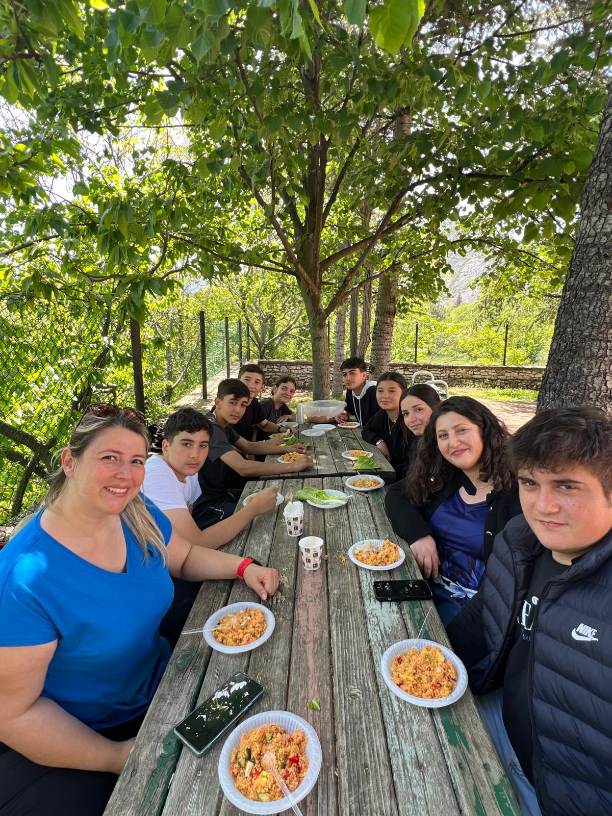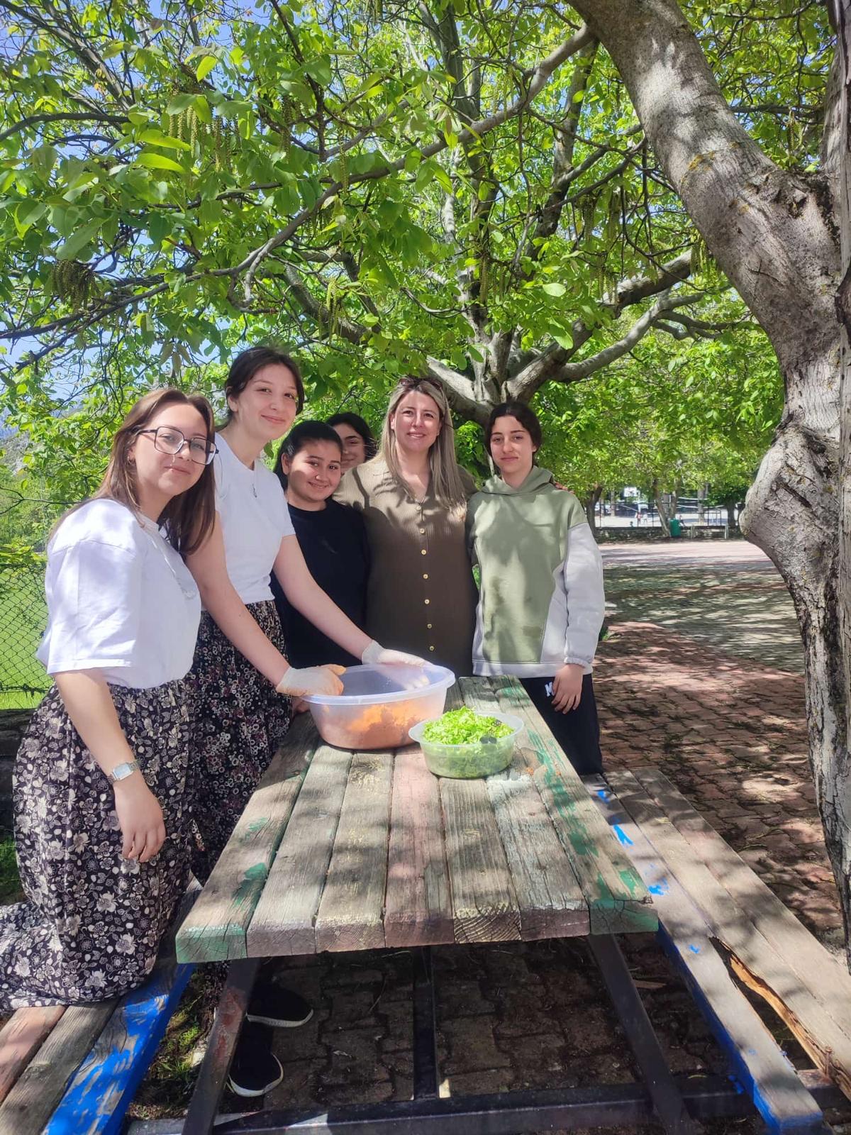 Necla-Yaşar Duru Çok Programlı Anadolu Lisesi olarak, toplumun ve gelecek nesillerin sağlıklı yaşamasına, besin ve besin güvenliğine katkı sağlamak amacıyla anlamlı bir bilgilendirme etkinliği gerçekleştirdik. Her kademeden toplam 45 öğrencimizin katılımıyla 12 Mayıs 2025 tarihinde düzenlenen bu etkinlikte, çevresel etkileri düşük bir beslenme modelinin oluşması ve yerel besin maddeleriyle mutfak kültürünün korunması üzerine odaklanıldı. Etkinlik kapsamında, öğrencilerimizle birlikte okulun bulunduğu ilçeye özgü, kendi açtıkları hamurla Holuçka yemeği hazırlandı. Geleneksel Holuçka yemeği, okulumuzun yemekhanesinde akşam yemeği olarak servis edildi. Ardından, İbradı yerel pazarlarından temin edilen taze sebzelerle kısır yapıldı. Hazırlanan tüm bu lezzetler, okul bahçesinde öğretmen ve öğrencilerimizin bir araya geldiği piknik havasındaki samimi bir etkinlikle paylaşıldı. Bu etkinlik, öğrencilerimizin sürdürülebilir beslenme alışkanlıkları kazanmasına, yerel mutfak kültürünü tanımasına ve sağlıklı yaşam bilincini geliştirmesine önemli katkılar sağladı.