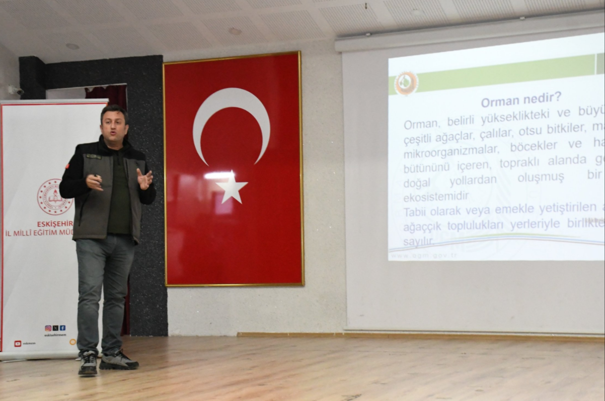 Öğretmenlerimize Yönelik "Orman Yangınlarında Farkındalık Eğitici Eğitimi" Düzenlendi. Millî Eğitim Müdürlüğümüz tarafından çevre bilincini ve sürdürülebilirlik farkındalığını okullarımızda yaygınlaştırmak amacıyla hayata geçirilen "Yeşil Vatan – Benim Okulum Geleceğe Çare" etkinlikler dizisi, 2025-2026 eğitim-öğretim yılı boyunca kararlılıkla sürdürülmektedir. Bu kapsamda okullarımızda, tematik takvime uygun, çeşitlendirilmiş çevre bilinci faaliyetleri uygulanmaya devam ediyor. Proje, Millî Eğitim Bakanlığı ile Tarım ve Orman Bakanlığı iş birliğiyle yürütülen "Köklerden Geleceğe Nefes Protokolü" çerçevesinde güçlü bir zemine oturmaktadır. Bu protokolden güç alarak, Eskişehir Orman Bölge Müdürlüğünün uzman desteğiyle, öğretmenlerimize yönelik hayati öneme sahip bir eğitim programı gerçekleştirildi. Öğretmenlerimizin, orman yangınlarının önlenmesi, yangın anında doğru tepkilerin verilmesi ve yangınların ekosistem üzerindeki etkileri konularında bilgi ve becerilerini artırmak amacıyla "Orman Yangınlarında Farkındalık Eğitici Eğitimi" düzenlenmiştir. Eğitimin Yapıldığı Yer: Gazi Mesleki ve Teknik Anadolu Lisesi Katılımcılar: İl ve İlçe Millî Eğitim yöneticileri Eskişehir Orman Bölge Müdürlüğü yöneticileri Çevre bilinci konusunda görevlendirilen öğretmenler Eğitim programında öğretmenlere, yangınlara karşı alınması gereken tedbirler, yangınların çıkış nedenleri ve yangın sonrası yapılabilecekler gibi konularda detaylı bilgiler aktarıldı. Bu eğitimin temel amacı, katılım sağlayan öğretmenlerin öğrendikleri bilgileri okullarında düzenleyecekleri etkinlikler aracılığıyla öğrencilere aktarmaları ve böylece "Yeşil Vatan" bilincini daha geniş kitlelere yaymalarıdır. Millî Eğitim Müdürlüğümüz, çevre eğitimi ve sürdürülebilirlik konularındaki iş birliklerini artırarak, gelecek nesillere daha yaşanabilir bir dünya bırakma hedefiyle çalışmalarına devam edecektir.