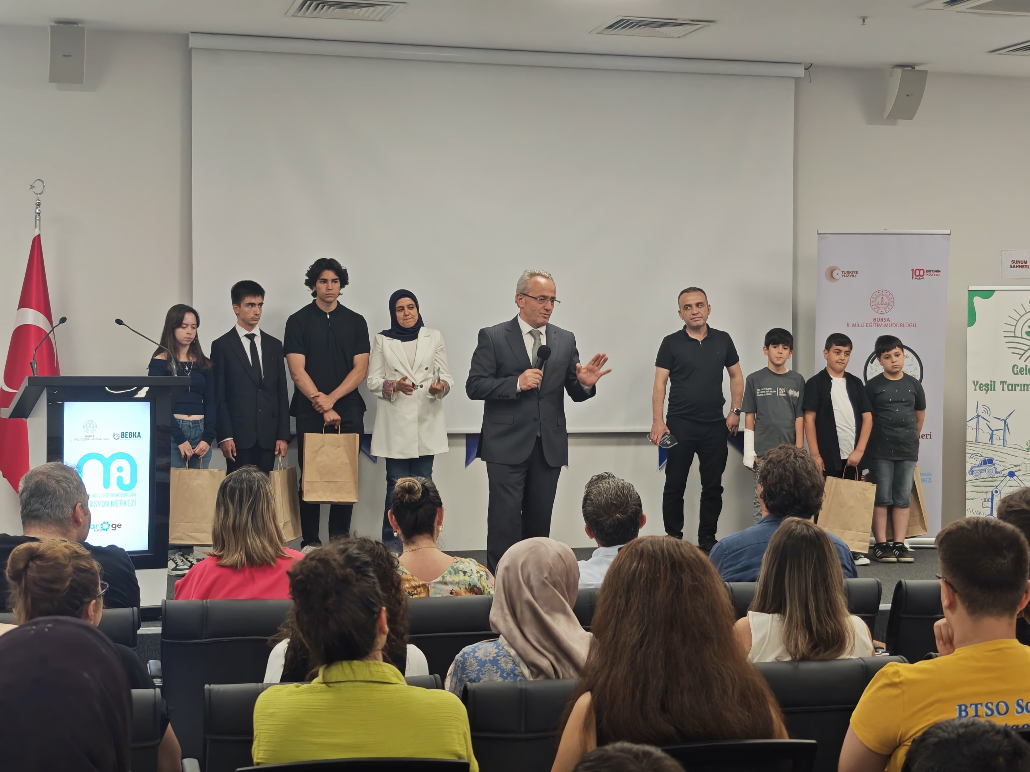Bursa Genç Ar-Ge Faaliyetleri çatısı altında yürütülen “STEM Yıldızları Mücadelesi” yarışma programı kapsamında şubat, mart, nisan ve mayıs aylarında 4 lig usulü yarışma etkinliği gerçekleştirildi. Ön eleme etkinliklerine tüm kademelerden 160 takımda 480 öğrenci katıldı. Jüri değerlendirmesi sonucu lig usulü yarışmalara 63 takımda 252 öğrenci yarışmaya hak kazandı. Yarışma etkinlikleri sonunda değerlendirme sonucu dereceye giren takımlar belirlenerek ödüllendirildi. •1. Yarışma Etkinliği: Yenilenebilir Enerji – Rüzgârın Peşinde: 11-13 Şubat 2025 tarihlerinde 63 takım, rüzgâr enerjisiyle çalışan yelkenli arabalarını ve enerji üreten rüzgâr türbinlerini tasarlayarak bilimsel araştırma ve mühendislik becerilerini sergiledi. •2. Yarışma Etkinliği: Matematik Gününe Özel – Mars Yaşam Modülü Tasarımı: 13-14 Mart 2025 tarihinde takımlar, mühendislik ve matematik becerilerini kullanarak Mars’ta bir yaşam alanı tasarladı. Matematik ve STEM’in gücüyle farklı geometrik şekilleri kullanarak Mars’ta bir yaşam modülü tasarladılar. Güneş panellerini en iyi şekilde yerleştirmek için açıyı hesapladılar. Modüllerinin boyutlarını ölçerek en uygun alanı oluşturmayı planladılar. Mars’ın zorlu koşullarına dayanıklı, sağlam yapılar inşa ettiler. •3. Yarışma Etkinliği: Doğal Afetler – Acil Gıda Dağıtım Robotu: 17-18 Nisan 2025 tarihlerinde 63 takım, doğal afetlerin ardından ihtiyaç sahibi bölgelere gıda ulaştırmayı amaçlayan robotik sistemleri temel mühendislik ve yazılım becerileriyle tasarladı ve kodladı. Kısıtlı süre ve malzemelerle robotik araçlarını birleştirip çalıştırdılar, kodlama becerilerini kullanarak engelleri aşan, çizgi izleyen, sesli ve ışıklı uyarılar veren sistemler tasarladılar, gerçek dünyadaki kriz senaryolarına teknolojik çözümler sundular. •4. Yarışma Etkinliği: Tema: Üretken Yapay Zekâ: 13-14 Mayıs 2025 tarihlerinde 63 takım, bu kez geleceğin dili: üretken yapay zekâ ile buluştu. “Sürdürülebilir Tarım” teması çerçevesinde kurgulanan etkinlikte, öğrenciler 90 dakika boyunca yalnızca yapay zekâ araçlarını kullanmakla kalmadı; aynı zamanda etkili istem mühendisliği, yaratıcılık, görselleştirme ve iletişim becerilerini de gösterdi. Takımlar, AI destekli hikâye kitapları tasarladı; kısa video, animasyon ve sunumlarla çözüm fikirlerini sundu; süreç boyunca kullandıkları yapay zekâ araçlarını belgeleyerek jüriye sundular. •STEM Yıldızları Mücadelesi Ödül Töreni: STEM Yıldızları Mücadelesi, 13 Haziran’da düzenlenen ödül töreniyle sona erdi. İlgiyle takip edilen bu süreçte; ilkokul, ortaokul ve lise düzeyinden toplam 252 öğrenci sürdürülebilir gelecek temalı dört farklı yarışmada bir araya geldi. Öğrenciler; gerçek dünya problemlerini analiz etti, STEM ve yapay zekâ araçlarını kullanarak çözümler üretti, projelerini jüriye sundu ve takım çalışması becerilerini geliştirdi. Final programında jüri değerlendirmeleri sonucunda dereceye giren takımlar açıklandı ve ödülleri takdim edildi.