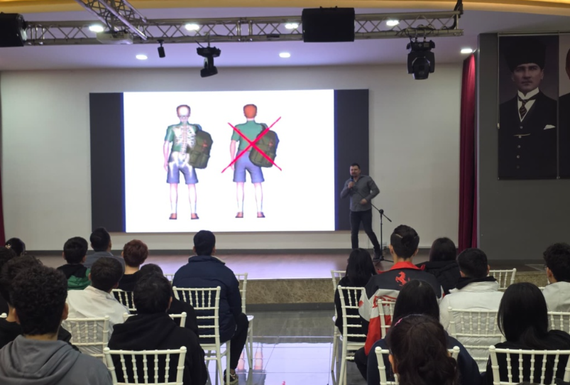 Yenişehir İlçemizde bulunan Evliya Çelebi Turizm Mesleki ve Teknik Anadolu Lisesi’nde, öğrencilere sağlıklı bir beden duruşu kazandırmak amacıyla Uzman Fizyoterapist U.Aksak tarafından “Doğru Duruş, Oturma ve Ağırlık Taşıma” konulu kapsamlı bir ergonomi semineri gerçekleştirildi. Seminerde; günlük yaşam ve okul ortamında sık yapılan duruş hataları, omurga sağlığının korunmasına yönelik temel prensipler ve doğru yük taşıma teknikleri uygulamalı örneklerle anlatıldı. 9. ve 10. sınıf öğrencilerinin aktif katılımıyla ilerleyen etkinlikte, sağlıklı duruş alışkanlıklarının ilerleyen yaşlarda oluşabilecek fiziksel sorunların önüne geçmedeki önemi vurgulandı. Program, öğrencilerin beden farkındalığını artırmayı ve ergonomik davranışları günlük yaşamda uygulamalarını teşvik etmeyi amaçlayan bilinçlendirici bir çalışma olarak öne çıktı.
