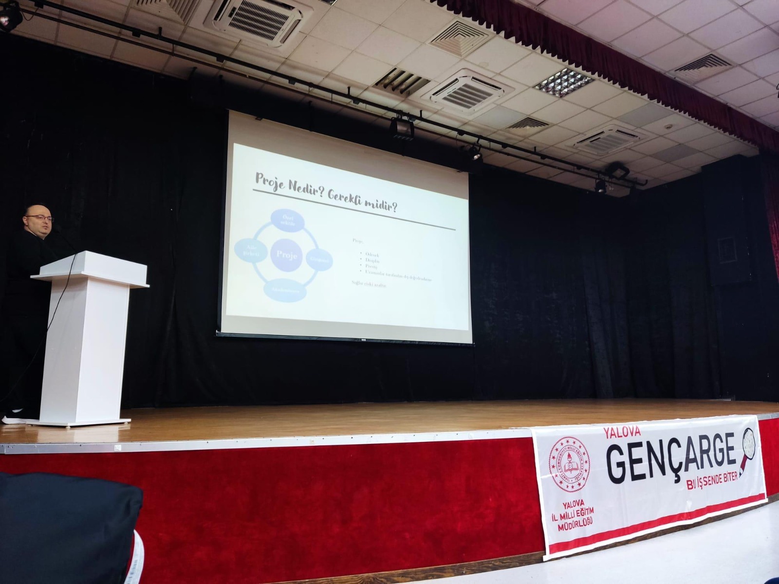 TÜBİTAK 2204-A Proje Yazma Eğitimi Gerçekleştirildi Yalova İl Millî Eğitim Müdürlüğü tarafından yürütülen “Bu İş Sende Biter” etkinlikleri kapsamında, Genç AR-GE ve YEGES stratejileri doğrultusunda organize edilen TÜBİTAK 2204-A Lise Öğrencileri Araştırma Projeleri Yazma Eğitimi, 2025 yılı Mart ayı içerisinde Yalova Halk Eğitim Merkezi Konferans Salonu’nda başarıyla gerçekleştirilmiştir. Eğitim, Yalova Üniversitesi öğretim üyesi Doç. Dr. Alper Kaşgöz tarafından verilmiştir. Etkinlikte, lise öğrencilerine yönelik TÜBİTAK 2204-A programına proje hazırlama süreci ayrıntılı biçimde ele alınmıştır. Katılımcılara bilimsel araştırma yöntemleri, problem belirleme, hipotez oluşturma, araştırma desenleri ve TÜBİTAK başvuru sisteminin işleyişi uygulamalı örneklerle anlatılmıştır. Eğitime Yalova genelindeki farklı ortaöğretim kurumlarından seçilen öğrenciler ve danışman öğretmenler katılım sağlamıştır. Öğrenciler, proje hazırlık süreçlerinde dikkat edilmesi gereken etik ilkeler ve bilimsel raporlama teknikleri konusunda bilgilendirilmiş; soru-cevap bölümüyle etkileşimli bir öğrenme ortamı oluşturulmuştur. Bu eğitim etkinliği ile öğrencilere bilimsel düşünme becerilerinin kazandırılması, proje üretme kültürünün yaygınlaştırılması ve TÜBİTAK destekli yarışmalara etkin katılım sağlanması hedeflenmiştir. YEGES ve Genç AR-GE vizyonu doğrultusunda yürütülen bu çalışma, Yalova’daki eğitim ortamlarında araştırma temelli öğrenmenin güçlendirilmesine yönelik önemli bir adım olmuştur.