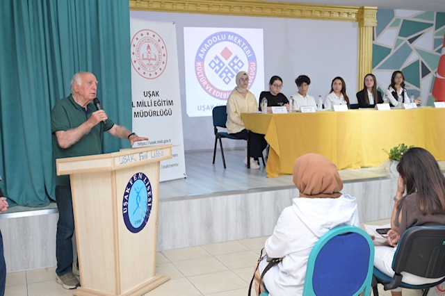 Anadolu Mektebi Projesi kapsamında, 10.06.2025 tarihinde saat 11.00 de Uşak Fen Lisesi Konferans Salonu'nda Türk edebiyatının usta kalemlerinden Mustafa Kutlu'nun eserlerinin ele alındığı bir panel gerçekleştirildi. Panelin başkanlığını Uşak Fen Lisesi öğrencilerinden Yusuf AKGÜN üstlenirken, panelist olarak Tuana ALPARSLAN, Hatice AKTAŞ, Arya Doğa YÜRÜK, Sude ACARTÜRK ve Sevde Melek DIBIZ görev aldı. Etkinlikte ilimizde Anadolu Mektebi Projesi uygulanan okulların öğrencileri, danışman öğretmenleri, Milli Eğitim Müdürlüğü temsilcileri olmak üzere toplam 84 katılımcı yer aldı. Öğrencilerin Mustafa Kutlu'nun edebi kişiliği ve eserleri üzerine yaptıkları sunumlar büyük beğeni topladı. Etkinliğin açılış konuşmasını Uşak Fen Lisesi Müdürü Hacer BOZAT yaparken, panelin değerlendirme konuşmasını ise Prof. Dr. Zeki ÖZCAN gerçekleştirdi. Prof. Dr. Özcan, Mustafa Kutlu'nun Türk hikayeciliğindeki yerini ve önemini vurgularken, öğrencilerin panellerdeki başarılarını da takdir etti.