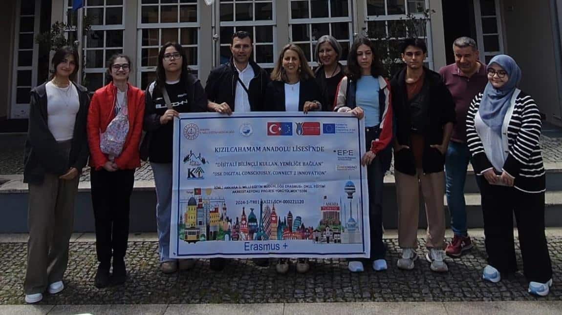 Genç AR-GE projesinin uluslararası iş birliği, dijital yeterlilikler ve kültürel farkındalık hedefleri doğrultusunda, "Dijitali Bilinçli Kullan, Yeniliğe Bağlan" temalı Erasmus+ faaliyeti başarıyla gerçekleştirilmiştir. Ankara İl Millî Eğitim Müdürlüğü Okul Eğitimi Akreditasyonu kapsamında yürütülen bu projenin temel amacı; öğrenci ve eğitim personelinin dijital teknolojileri bilinçli, güvenli ve etik kullanım becerilerini Avrupa standartlarına taşımaktır. 12-17 Mayıs 2025 tarihleri arasında Portekiz’in Esposende şehrinde düzenlenen hareketliliğe, Kızılcahamam Anadolu Lisesi’nden 6 öğrenci ve 2 öğretmen katılım sağlamıştır. Portekiz’deki EPE Zendensino kurumunda gerçekleştirilen eğitimler ve saha gözlemleri sayesinde, katılımcılar dijital araçların etik kullanımı ve yapay zekâ teknolojileri konusunda vizyoner bir deneyim kazanmıştır. Öğrencilerin kültürel farkındalıklarını ve küresel iletişim becerilerini güçlendiren bu süreç, kurumun uluslararasılaşma kapasitesine de stratejik bir katkı sunmuştur. Ankara İl Millî Eğitim Müdürlüğü paydaşlığında hayata geçirilen bu faaliyet, gençlerin bilişim teknolojilerini yenilikçi ve bilinçli bir şekilde kullanma hedeflerini somut bir başarıya dönüştürmüştür.