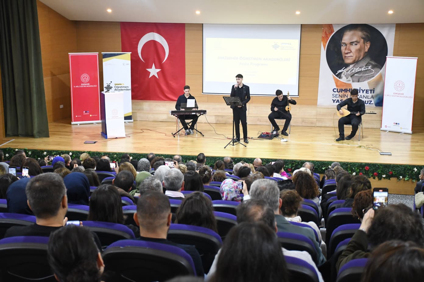 Bakanlığımız öncülüğünde, İl Millî Eğitim Müdürlüğümüz tarafından yürütülen Eskişehir Öğretmen Akademileri Projesi açılış töreni geniş katılımla gerçekleştirildi. Açılışta, Millî Eğitim Bakanlığı Bakan Danışmanı, Eğitimci-Yazar Erol Erdoğan tarafından “Öğretmen ve Veli İletişimi” konulu ilk ders verildi. Programa; Vali Yardımcısı Oğuz Şenlik, İl Millî Eğitim Müdürümüz Sinan Aydın, il ve ilçe millî eğitim müdürlüğü yöneticileri, okul müdürleri ve öğretmenler katıldı. Eskişehir Atatürk Güzel Sanatlar Lisesi öğrencilerinin müzik dinletisi programa renk kattı. Proje; öğretmenlerimizin mesleki, teknolojik, sanatsal ve kişisel gelişimini desteklemeyi amaçlıyor. Bu kapsamda; Biyografi, Şehir ve Kültür, Felsefe ve Düşünce, Edebiyat ve Müzik Akademileri ile zengin bir eğitim yolculuğu başladı.